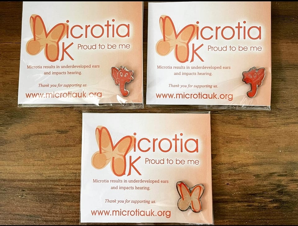 Our charity pin badges help to raise awareness about microtia. Choose from our right or left-sided microtia elephants, or our beautiful charity butterfly. The badges are perfect for accessorising your clothing, bags, attached to a greetings card or given as a gift to a loved one.