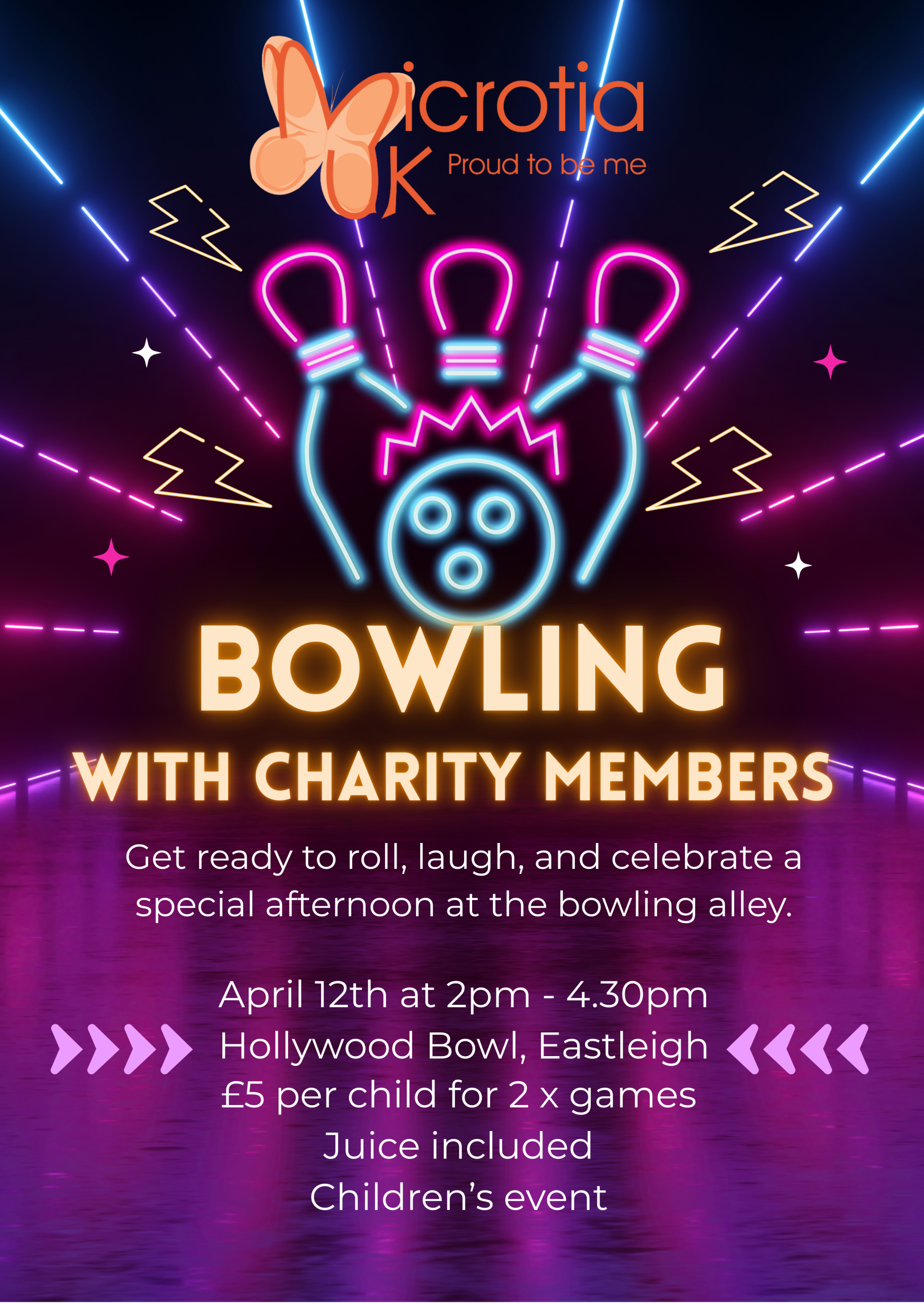 We’re excited to invite you to a fun-filled children’s bowling event at Hollywood Bowl, Eastleigh on Sunday 12th April at 2:00pm – 4:30pm!